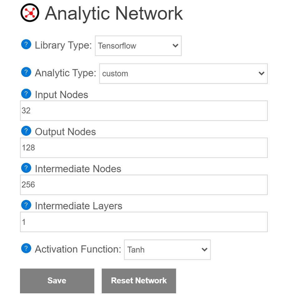 You can use either the Bot Libre deep learning library, or the TensorFlow deep learning library. You can choose the inputs, outputs, and layers.